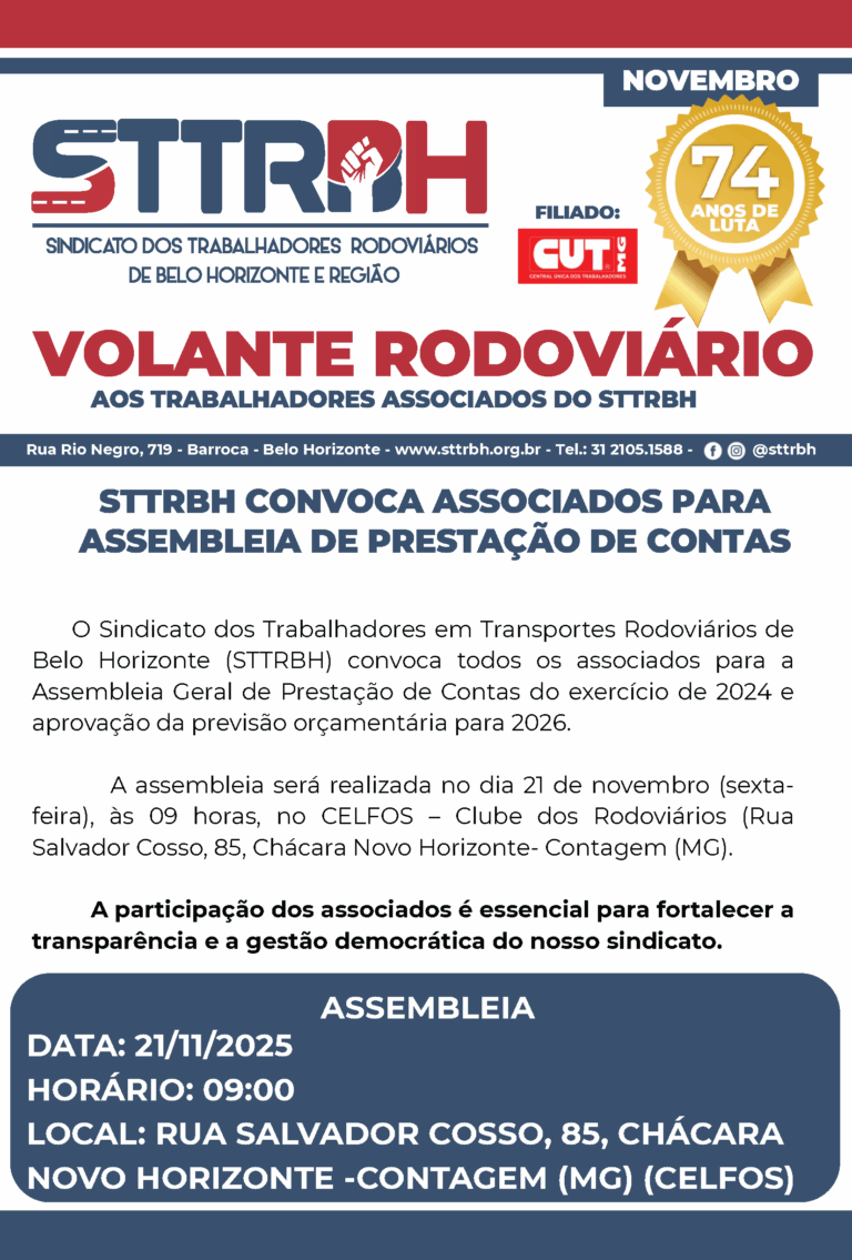 🚍 Fortaleça seu sindicato, fortaleça sua categoria! 💪🏾 Filie-se ao STTRBH e tenha acesso a: ⚖️ Assessoria jurídica 🎉 Clube