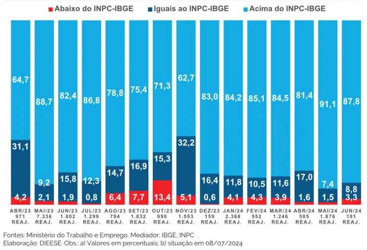 De acordo com o Dieese, a data-base de junho é a sétima seguida em que mais de 80% das categorias apresentaram ganhos salariais acima...